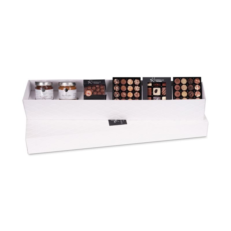 Poniższe słodkie upominki stanowią przykładową, poglądową ofertę, jaką przygotowujemy z myślą o poszczególnych świętach i wydarzeniach okolicznościowych. Za każdym razem, uzupełniamy ją o nowe i jeszcze pyszniejsze pralinki i czekoladki na święta. Zapraszamy do składania zamówień w okresie poprzedzającym konkretne święto bądź szczególną okazję. Jeśli już teraz szukają Państwo pomysłu na słodki upominek - zachęcamy do zapoznania się z czekoladowymi pomysłami na prezent, które znajdują się na stałe w naszej ofercie.