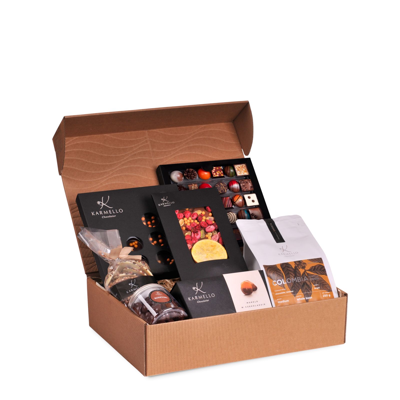 Poniższe słodkie upominki stanowią przykładową, poglądową ofertę, jaką przygotowujemy z myślą o poszczególnych świętach i wydarzeniach okolicznościowych. Za każdym razem, uzupełniamy ją o nowe i jeszcze pyszniejsze pralinki i czekoladki na święta. Zapraszamy do składania zamówień w okresie poprzedzającym konkretne święto bądź szczególną okazję. Jeśli już teraz szukają Państwo pomysłu na słodki upominek - zachęcamy do zapoznania się z czekoladowymi pomysłami na prezent, które znajdują się na stałe w naszej ofercie.