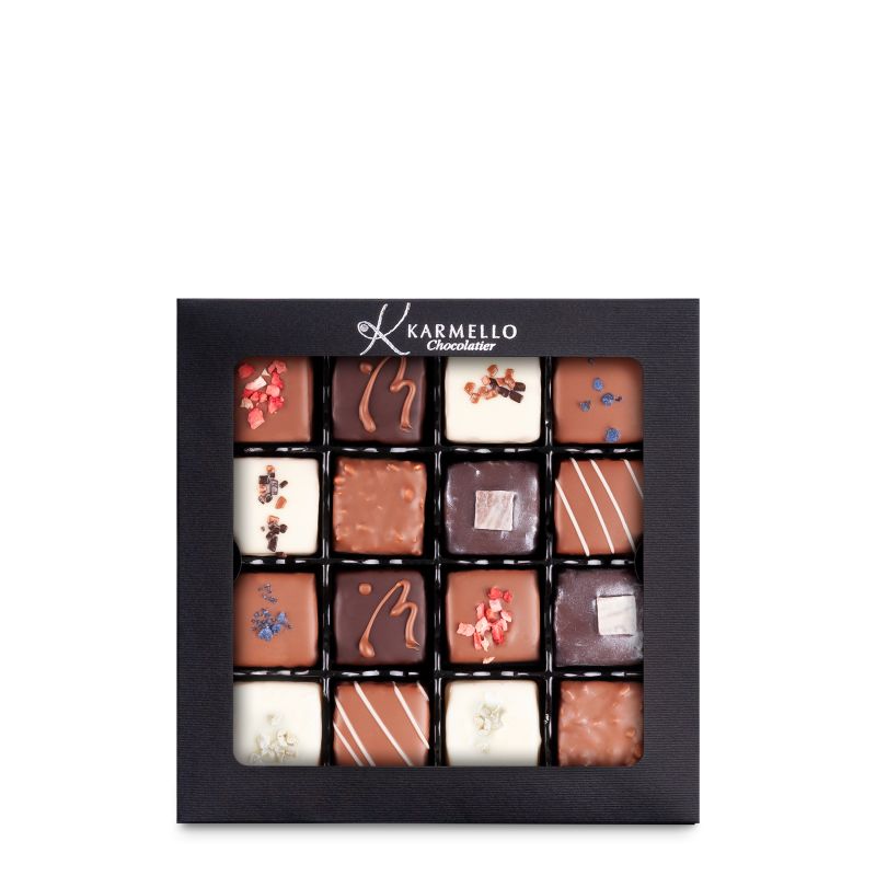 Pełnia smaków zaklęta w wykwintnych pralinach. Kolekcja pralin została skomponowana tak, by trafić w gusta wielbicieli klasycznych nut smakowych, co czyni ją doskonałym pomysłem na firmowy upominek. Zestaw niezwykle atrakcyjny wizualnie dzięki pudełku z okienkiem, które sprawia, że pralinki wyglądają jak pięknie dobrana, słodka układanka. Idealny upominek dla partnerów biznesowych i współpracowników.