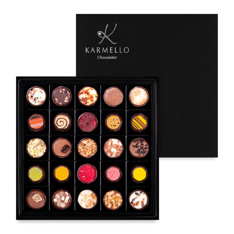 Kolekcja ekskluzywna mix komponowana jest z dostępnych, najdoskonalszych smaków i aromatów, ukrytych w najwyższej jakości czekoladzie i dekorowanych z najwyższą starannością rozmaitymi dodatkami. Kompozycja doskonale sprawdzi się jako elegancki upominek dla pracowników lub kontrahentów biznesowych.