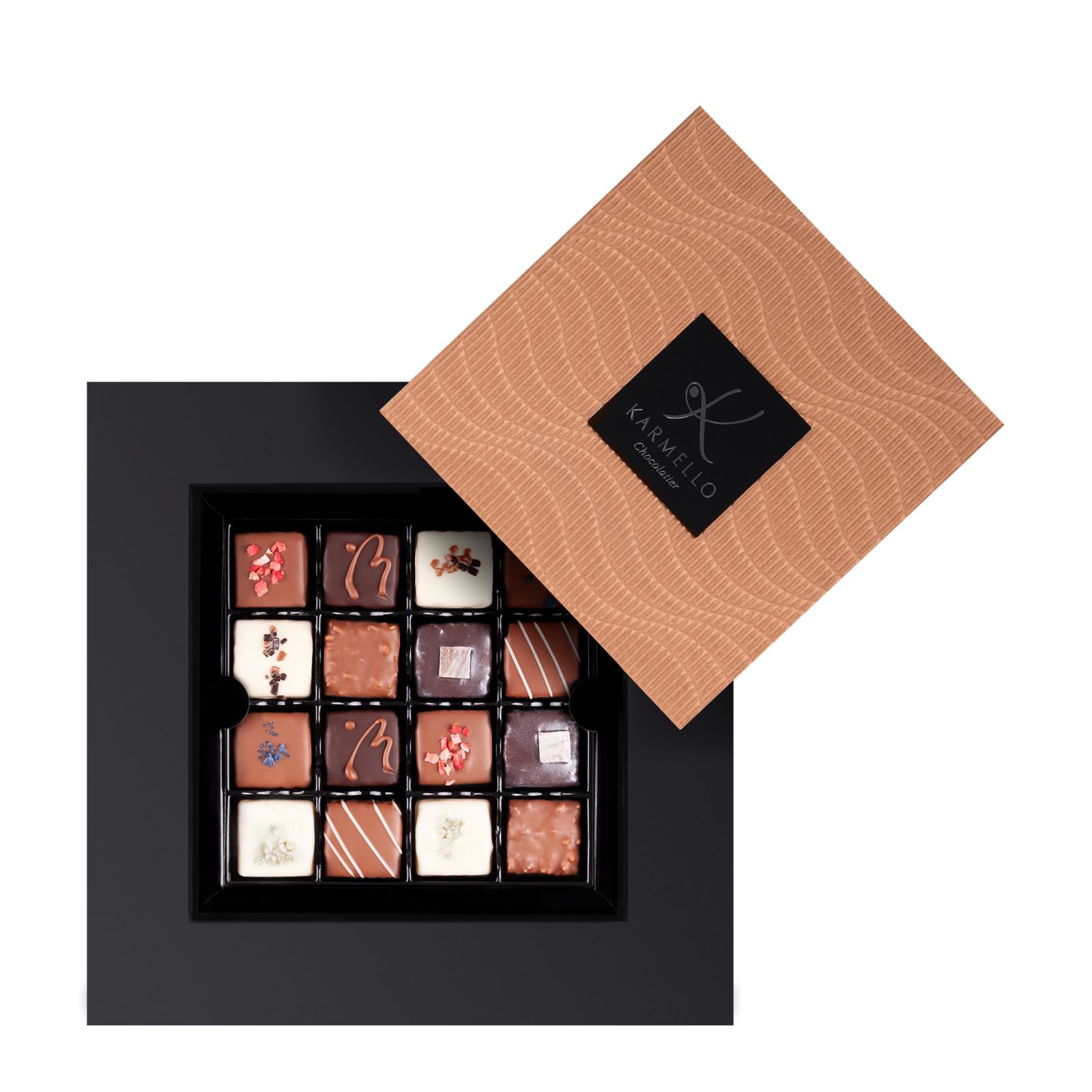 Najdelikatniejsze, rozpływające się w ustach praliny w różnorodnych smakach to kompozycja idealna dla każdego, kto zechce delektować się wyjątkowością aromatów Karmello. Zestaw niezwykle atrakcyjny wizualnie dzięki opakowaniu z ramą.
