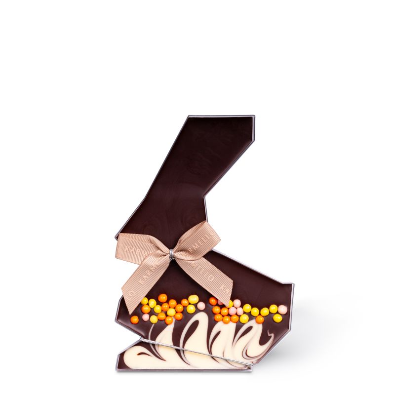 Zając z ciemnej czekolady– ręcznie wykonany z najwyższej jakości składników, to kwintesencja wielkanocnej słodyczy o głębokim aromacie kakao i aksamitnie wytrawnym smaku. Minimalistyczna, elegancka forma i staranna oprawa podkreślają jego wyjątkowy charakter.