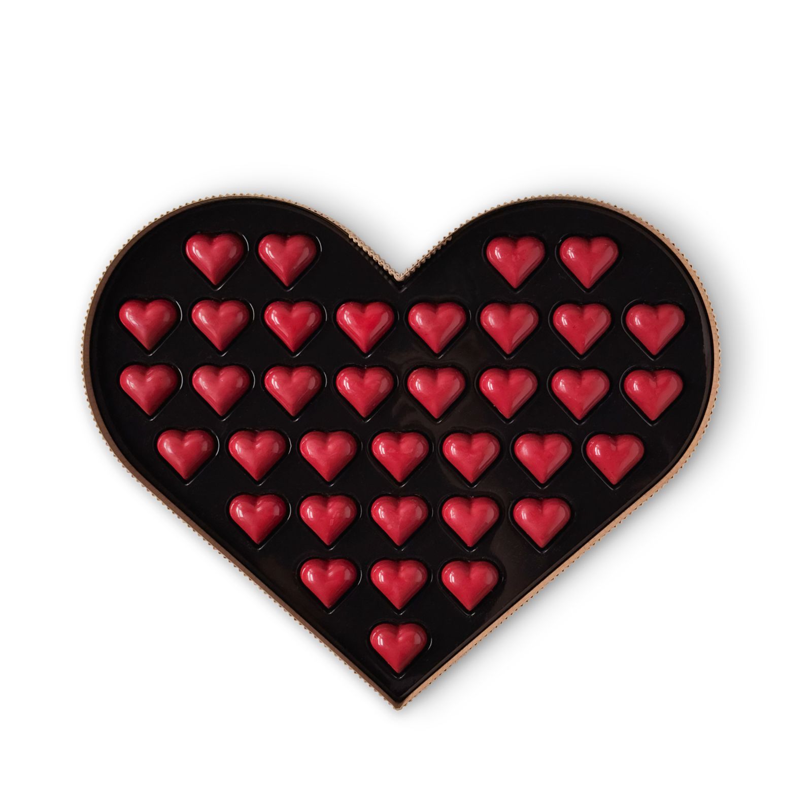 36 czekoladowych serduszek o karmelowym charakterze, zamkniętych w eleganckim opakowaniu w kształcie serca — to drobny, ciepły gest na Dzień Babci i Dziadka.