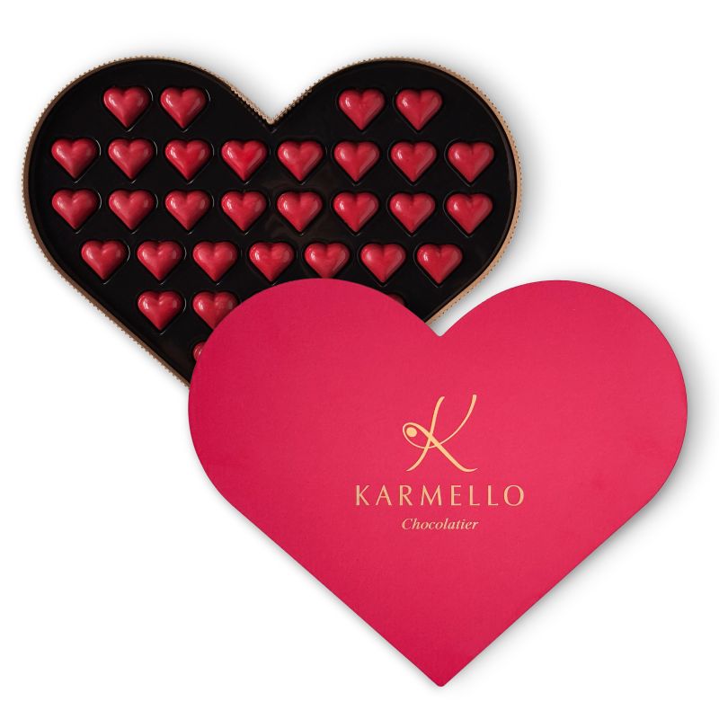 36 czekoladowych serduszek w karmelowej odsłonie, które zamieniają Walentynki w moment pełen ciepła i słodkiej bliskości. Każde rozpływa się w ustach, odsłaniając głębię aksamitnego karmelu. Całość zamknięta w eleganckim opakowaniu w kształcie serca staje się dopracowanym gestem uczuć – prostym, a jednocześnie pełnym smaku i klasy.