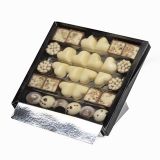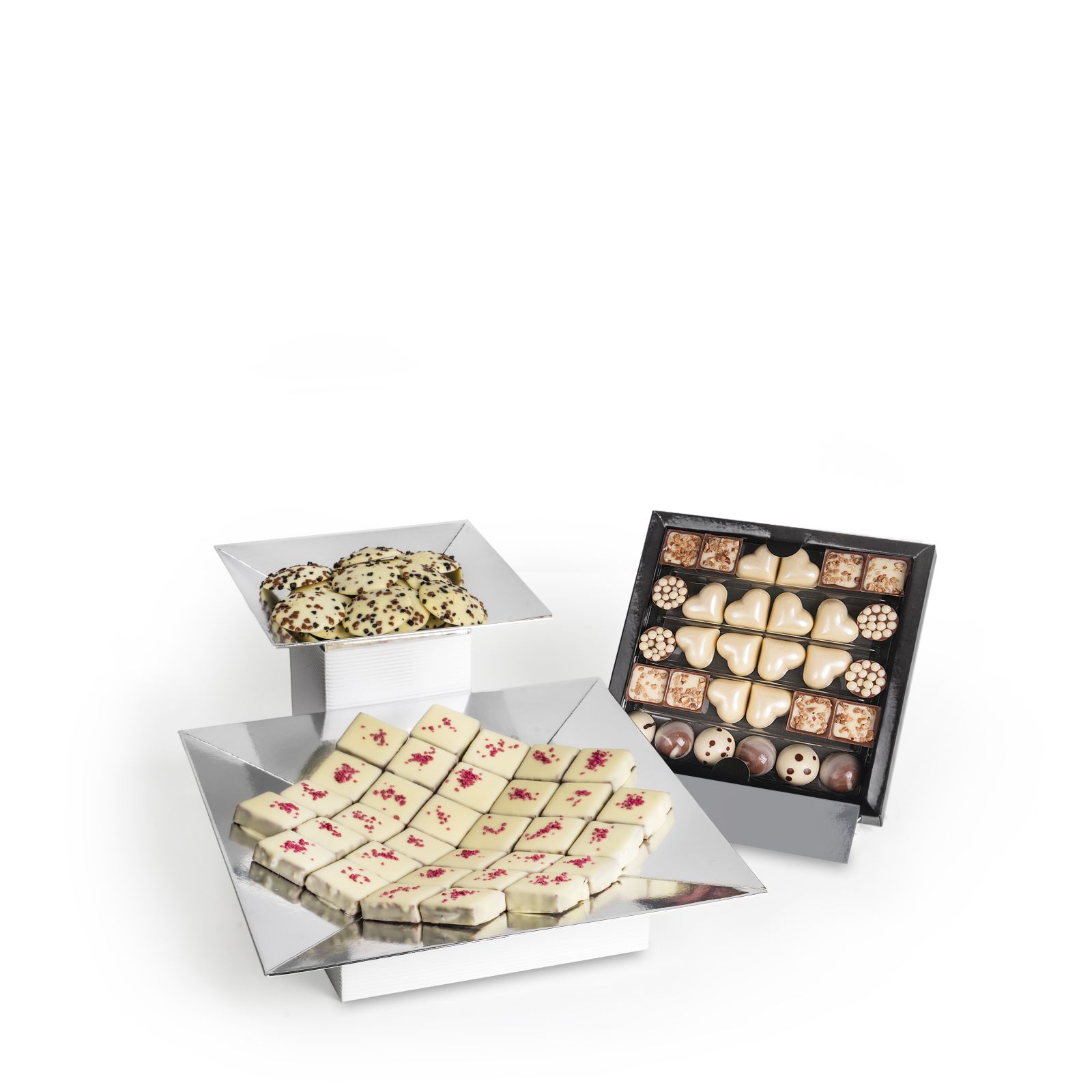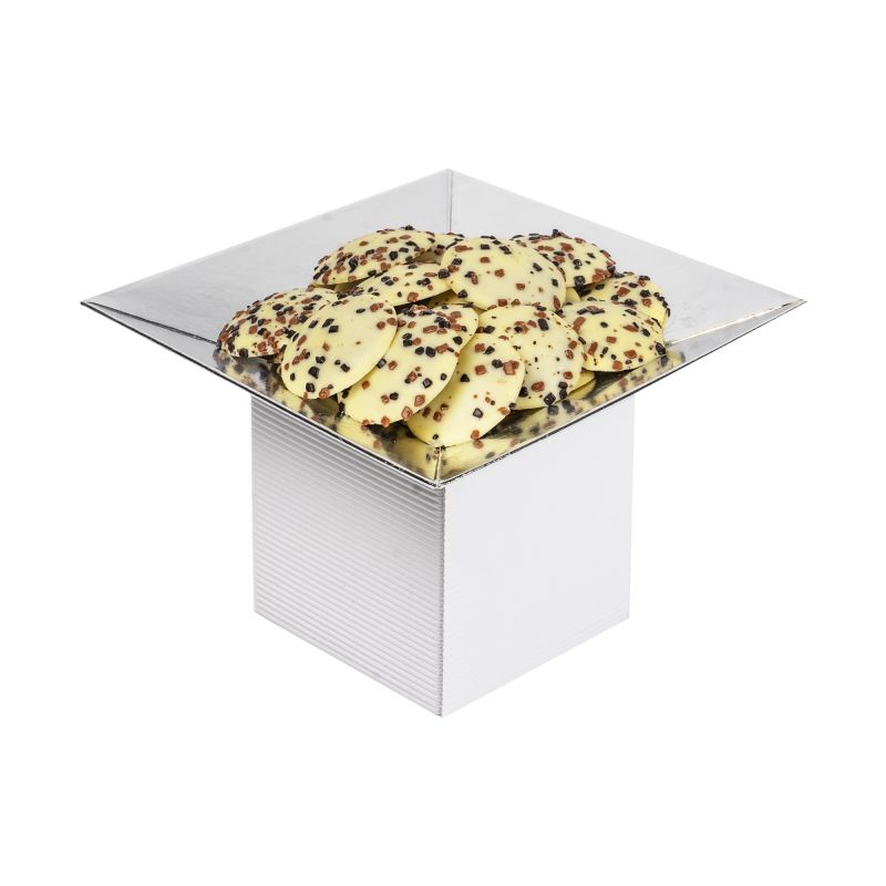 mix czekoladek to połączenie smaku wanilii w towarzystwie czekolady gianduja oraz orzechowej. ciasteczka to smak korzennych nut zamknięty w słodyczy białej czekolady. dopełnienie zestawu stanowią praliny róża – jedwabiste, śmietankowe nadzienie połączone z subtelnym różanym aromatem w towarzystwie białej czekolady.