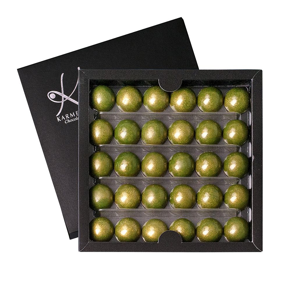 moc słodkich aromatów pistacji i migdałów w kompozycji z rozpływającą się w ustach, mleczną czekoladą.